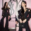 Alanna Panday shines as a style icon at a YSL beauty event in a luxurious black co-ord set from itrh2.0, paired with a Balenciaga handbag. Her chic look and signature pink makeup are an ode to modern elegance!