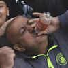 The fan is struggling to move when another person comes up behind him and pours liquid down his throat from a bottle, despite being restrained, creating an odd scene by itself. But then things took an even stranger turn, with the commentary on the broadcast describing it as the fan "drinking Arsenal tears."